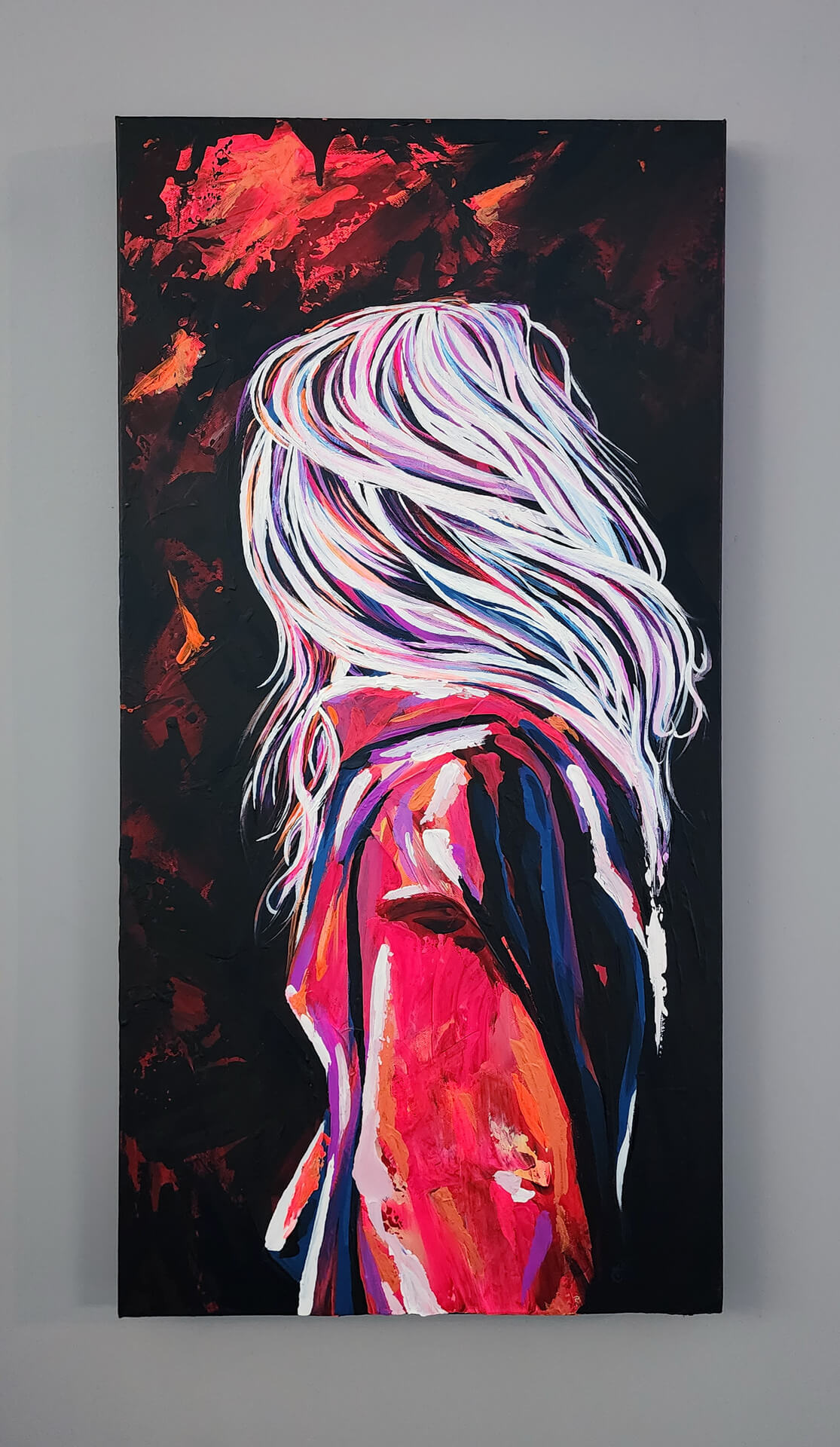 Perséphone : Ce tableau est le symbole des épreuves vécues, qui laissent des traces. Celles qui forgent notre caractère et nous mènent à évoluer. Il représente la lourdeur avant de trouver la force qui sera nécessaire pour nous libérer des relations toxiques de notre vie. Avoir le courage renaître et devenir plus forte après celles-ci.